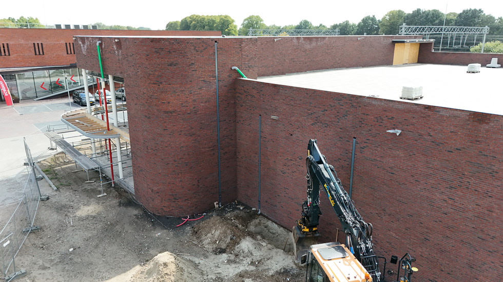 Tientallen meters de hoogte en tevens de lengte in. Afgewerkt met een aangezicht van mooie afgeronde hoeken.